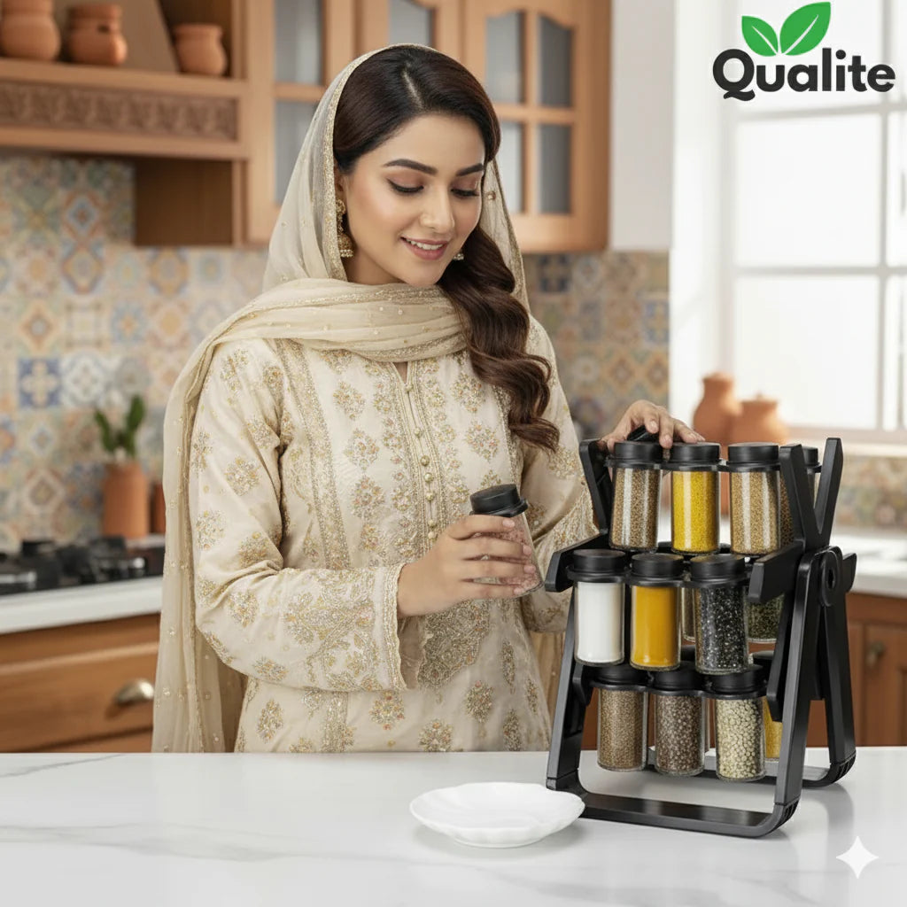 Have you ever spent minutes searching for the right spice while cooking? With this rotating spice rack, everything is visible and easy to grab. Just spin and pick the spice you need instantly.